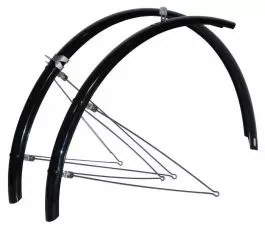 Skærmsæt til fastmontering i blank sort og 33mm brede samt rustfrie stiver.
